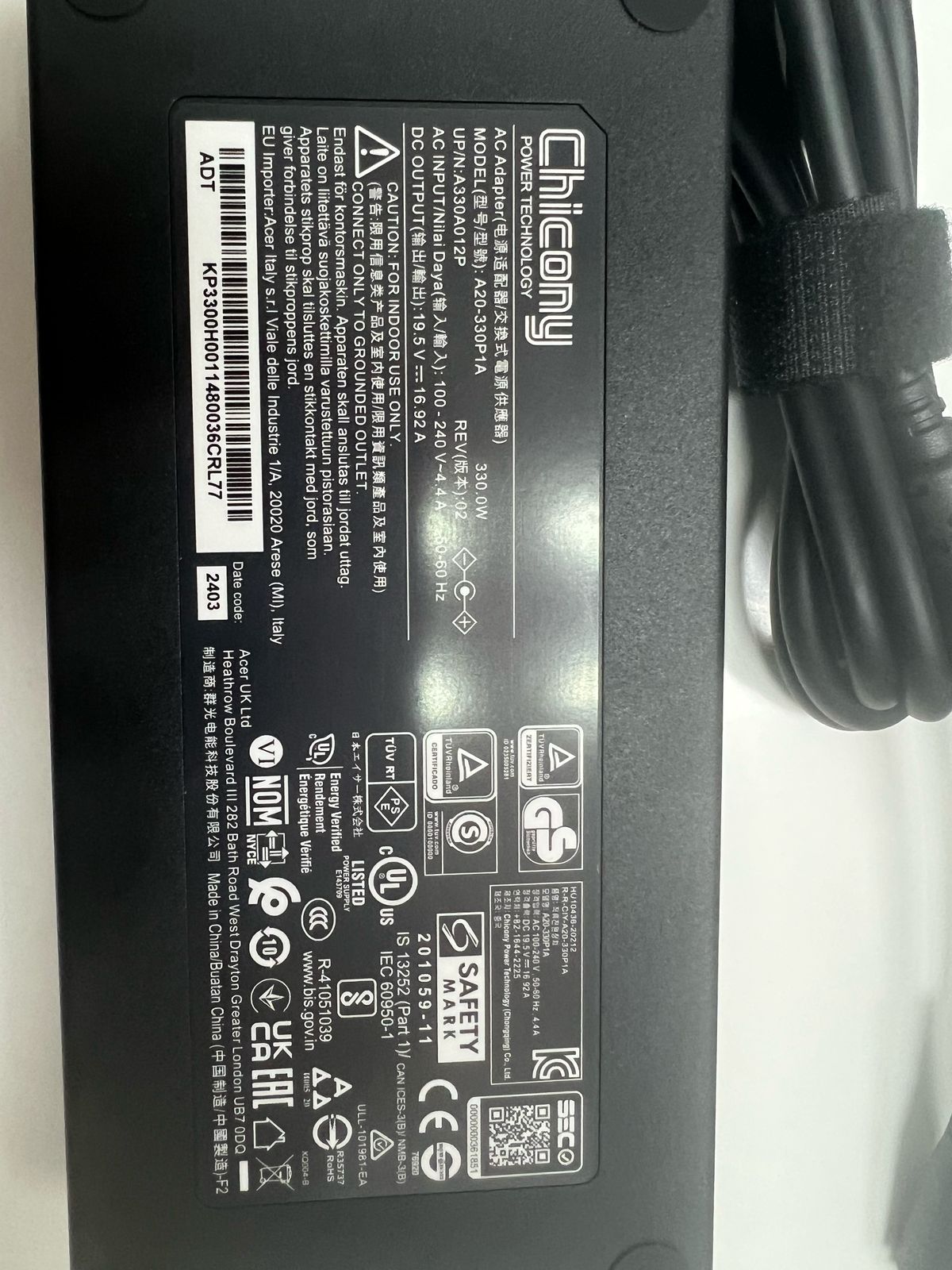 330W AC Adapter Charger For ACER Nitro 5 AN515-58-73V6 AN515-58-700B 19.5V 16.9A