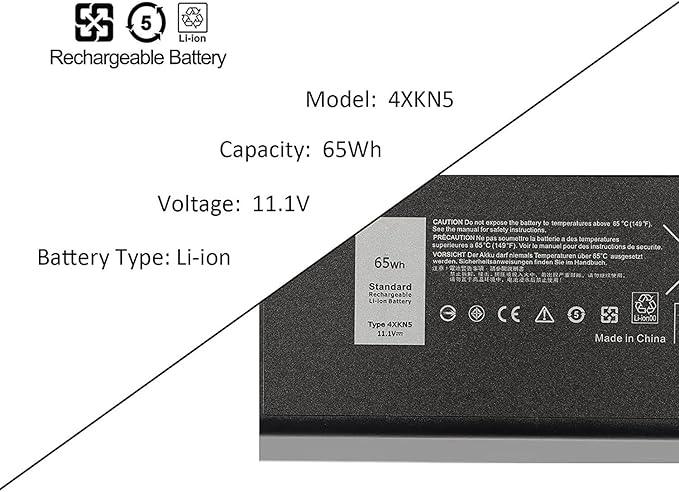 - 【Specification】Voltage: 11.1V. Capacity: 65Wh / 6-Cell. Battery Type: Li-ion. Condition:100% New from Manufacturer.