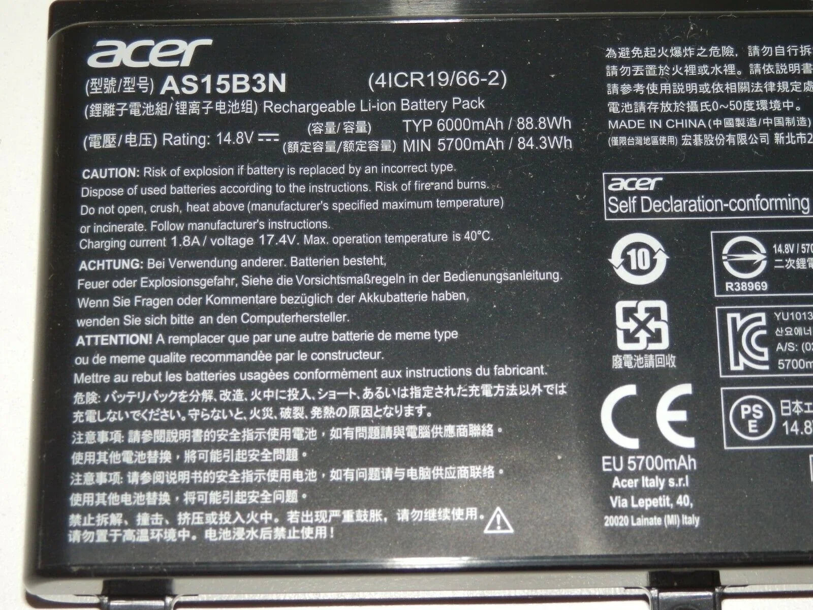AS15B3N Compatible Acer Predator 15 G9 Series, Predator 17 G5 Series, Predator 17 G9 Series Laptop Battery
