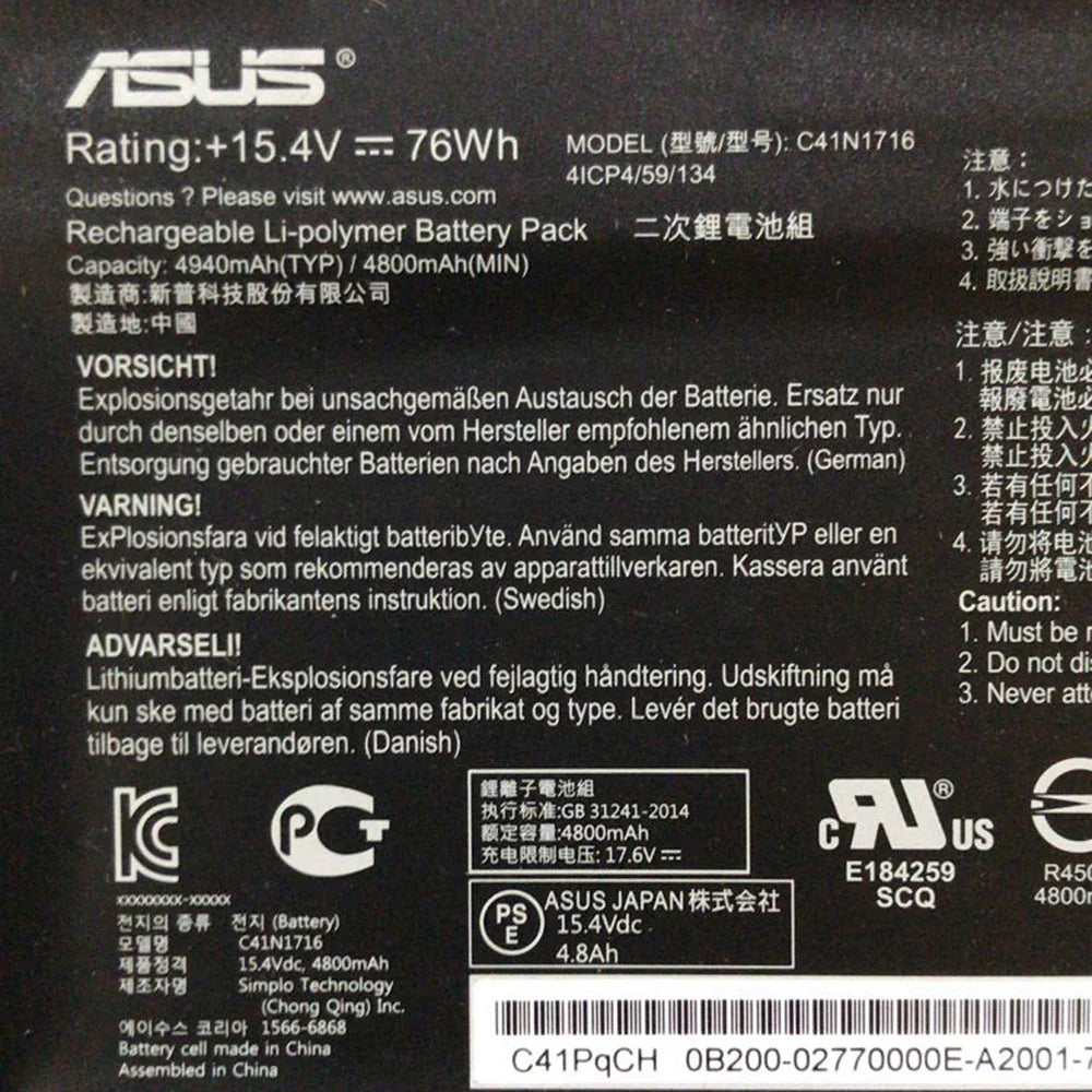 ASUS ROG Strix GL703GM GL703GS C41N1716 laptop battery