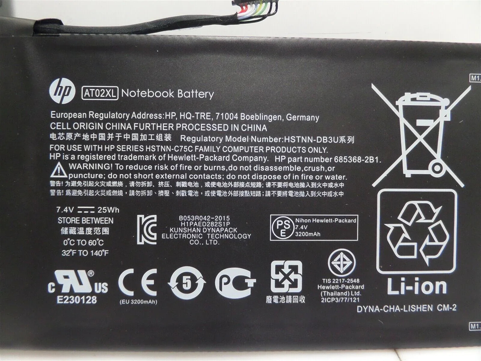 685368-1B1, 685368-1C1, 685368-2B1, 685368-2C1, 685987-001, 685987-005, AT02025XL, AT02XL, D3H85UT, D7X24PA, HSTNN-C75C, HSTNN-DB3U, HSTNN-IB3U