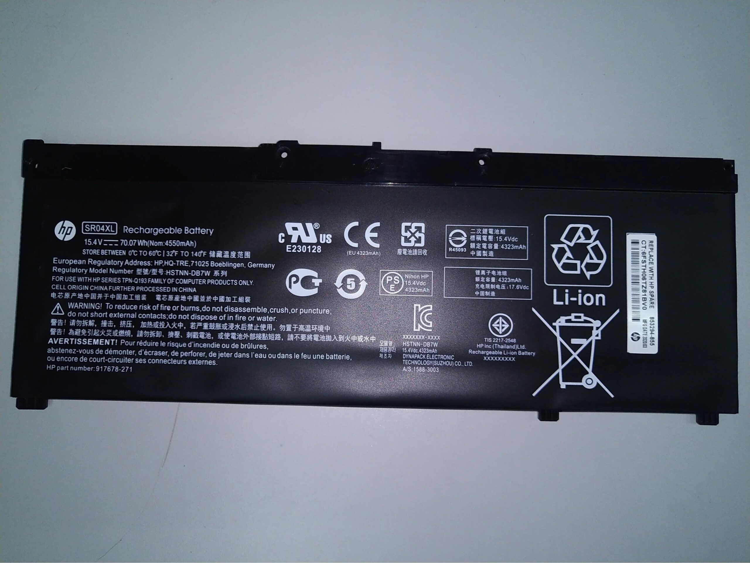 916678-171, 917678-171, 917678-1B1, 917678-271, 917678-2B1, 917724-855, 917724-856, HSTNN-1B7Z, HSTNN-DB7W, HSTNN-IB7Z, SR04070XL, SR04070XL-PL, SR04XL, TPN-C133, TPN-C134, TPN-C144, TPN-Q193, 7265NGW