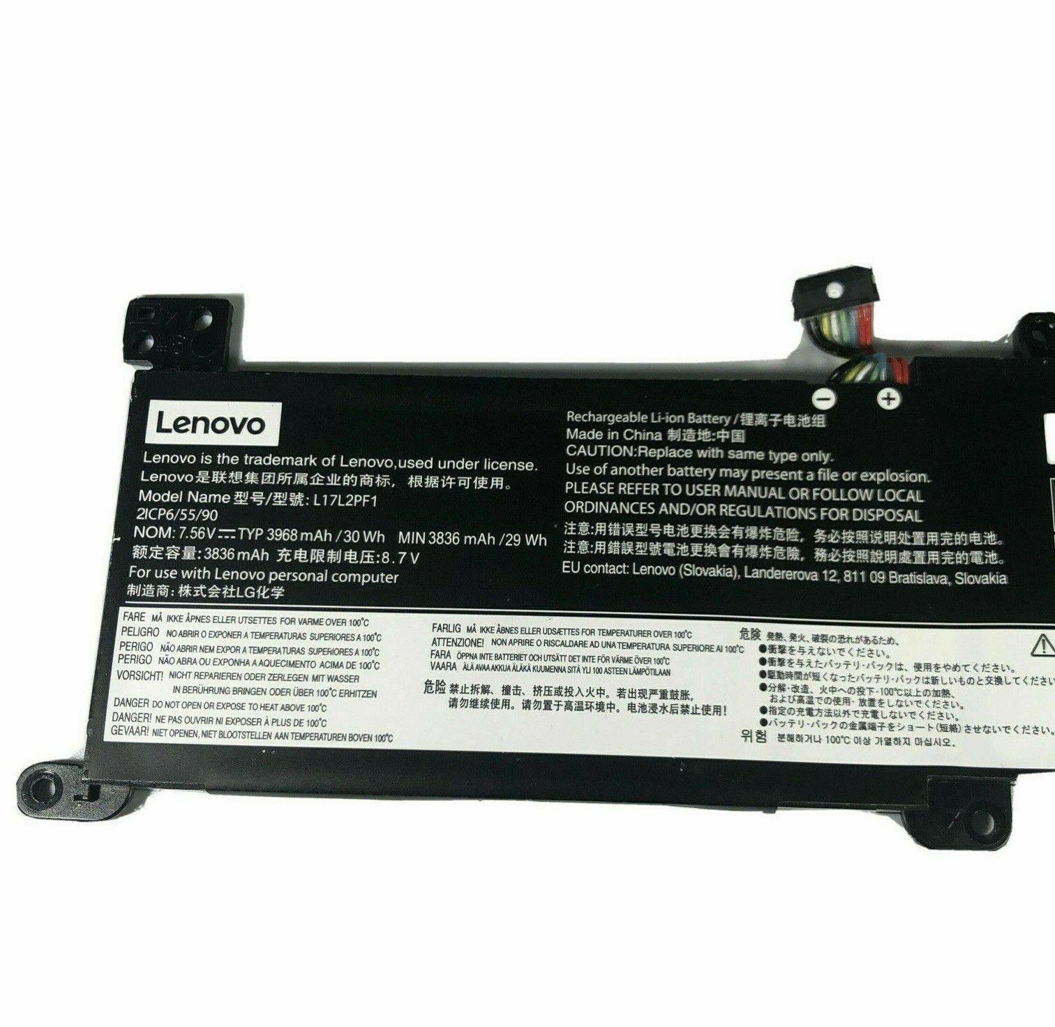 SpecificationsAccording to multiple merchant and product pages, the key specifications for the L17L2PF1 battery are as follows:Attribute Specification Battery Type Lithium-ion (Li-ion) or Lithium Polymer Voltage 7.5V – 7.6V (compatible with 7.56V and 7.8V variants) Capacity 30Wh (Watt-hours) or approx. 3968mAh – 4030mAh Number of Cells 2 cells (some compatible models may have 3 cells) Compatible Laptop ModelsThe L17L2PF1 battery is compatible with a wide range of Lenovo IdeaPad, V, and other series laptops. You should verify your specific laptop model number against the manufacturer’s compatibility list to ensure a correct fit.Compatible models include:- Lenovo IdeaPad 330 series (e.g., 330-14AST, 330-15IKB, 330-17AST)