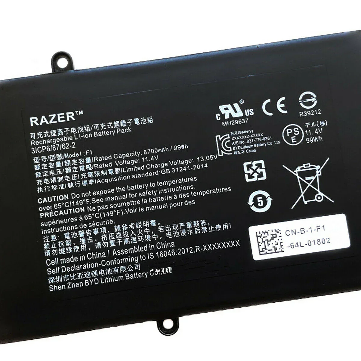 - Battery cells: 3-cell