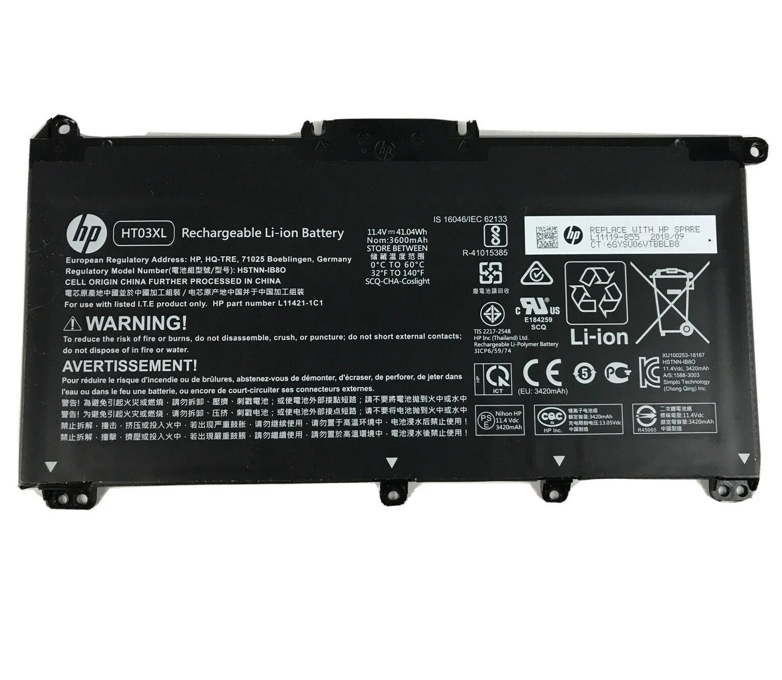 920046-121, 920046-421, 920046-541, 920046-AC1, 920070-855, 920070-856, HSTNN-1B80, HSTNN-DB8R, HSTNN-DB8S, HSTNN-DB9D, HSTNN-IB7Y, HSTNN-IB80, HSTNN-IB8O, HSTNN-IB8X, HSTNN-LB7J, HSTNN-LB7X, HSTNN-LB8L, HSTNN-LB8M, HSTNN-LBBF, HSTNN-OB1E, HSTNN-OB1H, HSTNN-UB7J, HSTNN-UB7Q, HSTNN-UB7X, HT03041XL, HT03XL, L11119-855, L11119-856, L11119-857, L11421-1C1, L11421-1C2, L11421-1C3, L11421-1C5, L11421-271, L11421-272, L11421-2C1, L11421-2C2, L11421-2C3, L11421-2D1, L11421-2D2, L11421-2D3, L11421-421, L11421-422, L11421-423, L11421-541, L11421-542, L11421-543, L11421-544, L11421-545, L11421-AC1, TF03041XL, TF03041XL-PR, TF03XL, TPN-C131, TPN-C135, TPN-C136, TPN-C139, TPN-I130, TPN-I131, TPN-I132, TPN-I133, TPN-I134, TPN-I135, TPN-Q188, TPN-Q189, TPN-Q190, TPN-Q191, TPN-Q192, TPN-Q196, TPN-Q207, TPN-Q208, TPN-Q209, TPN-Q210, TPN-W131