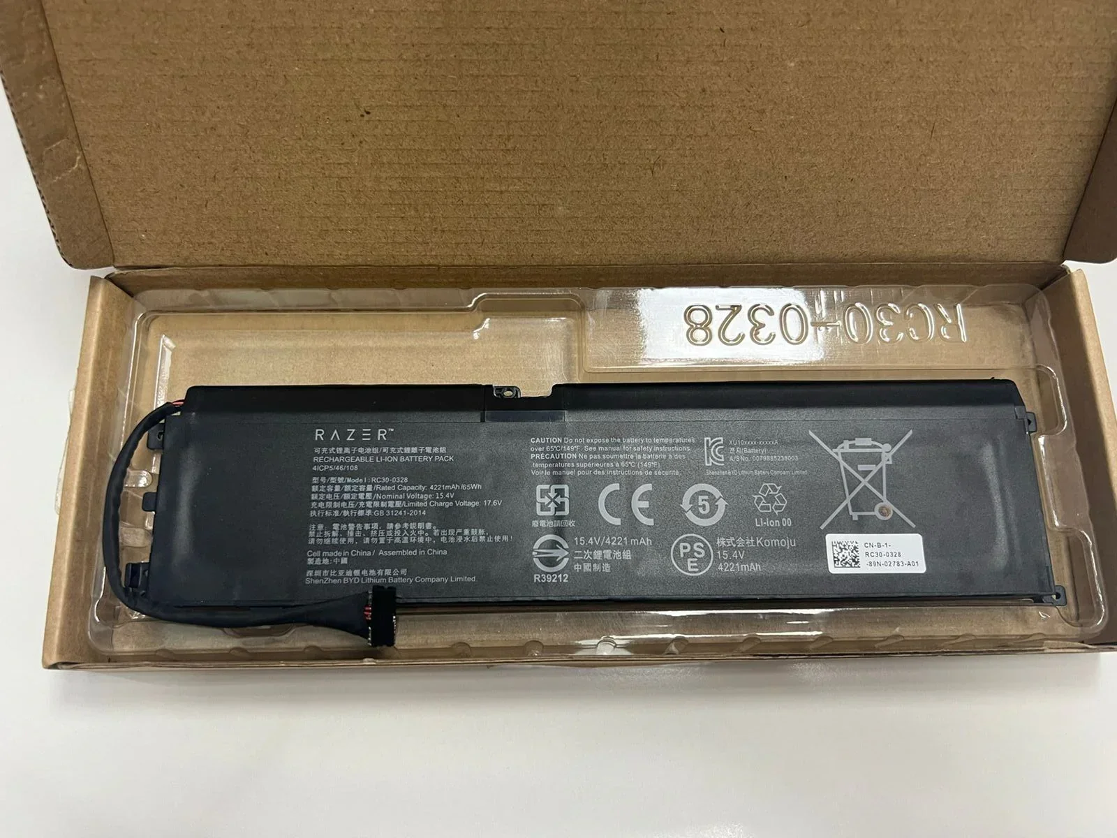 - 【Specifications】 Battery type: Li-ion; Voltage: 15.4V; Capacity: 65Wh /4221mAh/4-Cell .100% New from Manufacturer. Up to 500 recharge cycles over the life of the battery.